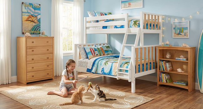 Buy it at Birth...Keep it for life! You can buy real wood furniture that can last a lifetime and still have money to save for college. Many of our beds are convertible that grow with the needs of your child and family. We have twin and full beds, bunk beds and loft beds. Our storage beds and captains beds are popular choices for kids and teens. Shop our student desks, chests of drawers, armoires, bookcases, toy boxes and kids tables and chairs. Our youth, kids and children's furniture is typically available in woods such as pine, maple, birch, oak, alder, and cherry. The "Hoot" Judkins Furniture stores in Redwood City deliver wood furniture from San Francisco to San Jose and throughout the Bay Area and Northern California.