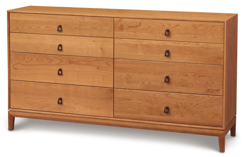$4,899.99Solid Cherry Wood Mansfield Eight Drawer Dresser in Natural Finish. This item is stocked in natural finish or special order in other size and color. The Mansfield Bedroom represents a striking combination of the familiar and the unconventional. Mansfield dressers and chests feature soft-close extension drawers. The Mansfield Bedroom is crafted in solid cherry and is Made to Order in several finishes with a variety of knob and pull options. The Mansfield Bedroom is also crafted in solid walnut with a natural finish. The finish is GREENGUARD Certified for low chemical emissions.